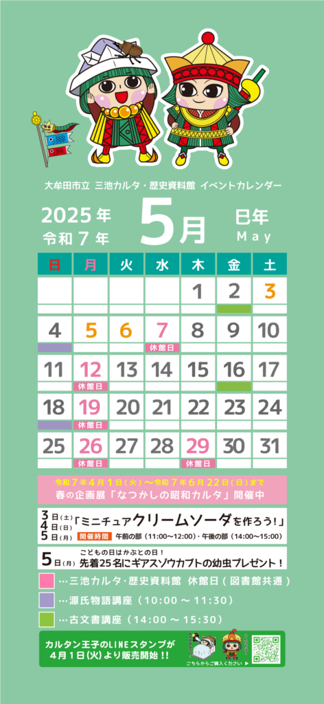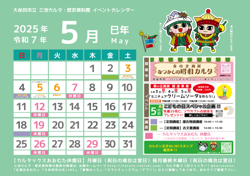 5月5日(月)…祝日「こどもの日」(当日は通常通り開館しております)