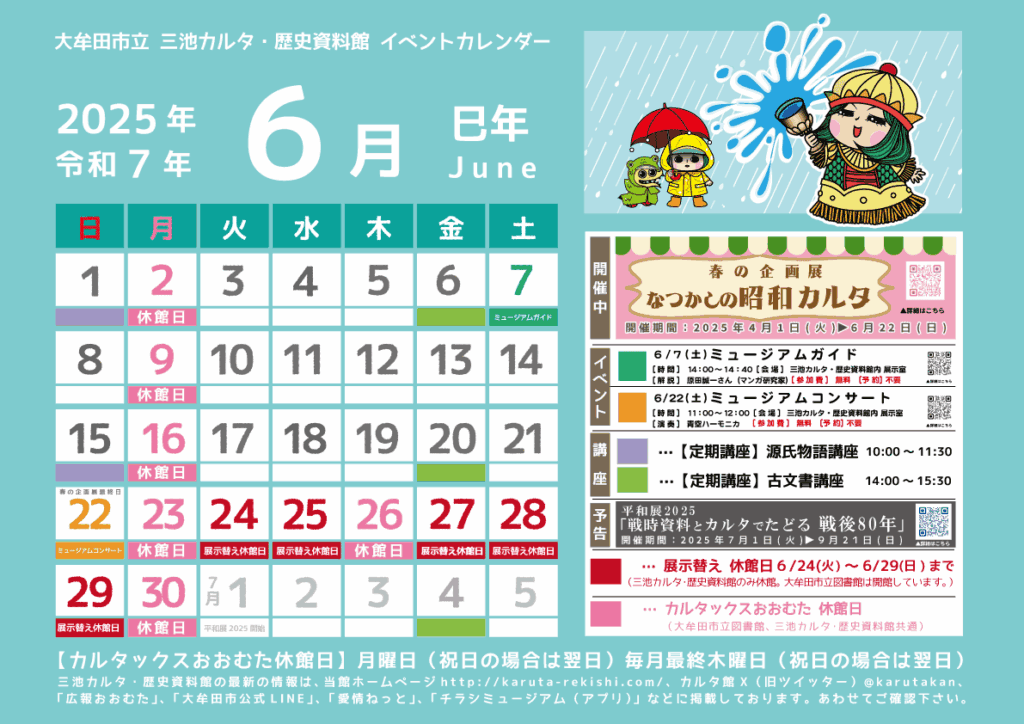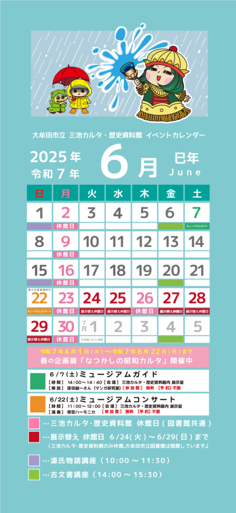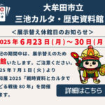 6月24日(火)~6月29日(日)…展示替え休館日 ※三池カルタ・歴史資料館のみ休館