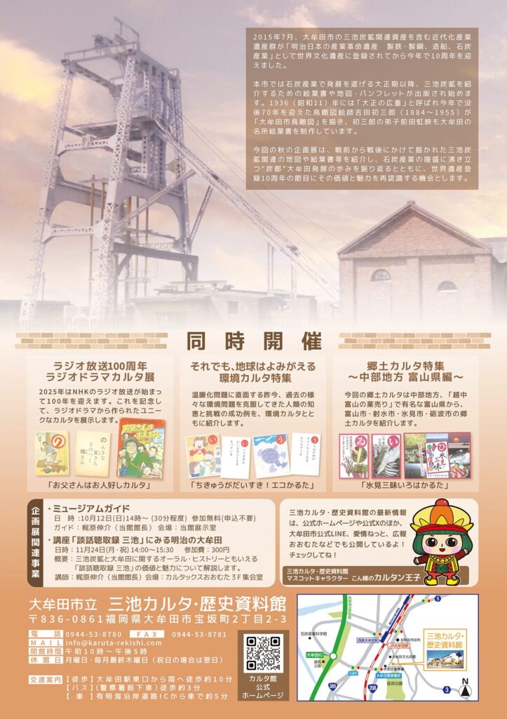 世界遺産登録10周年記念 秋の企画展「地図・絵葉書でよみがえる三池炭鉱」