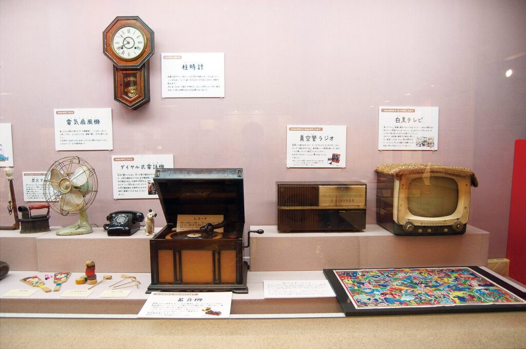 昭和時代のくらしで使われていた道具の解説・展示のほか、当時のダイヤル型電話機や、タイプライターなどの実物にふれることができるコーナーもあります。